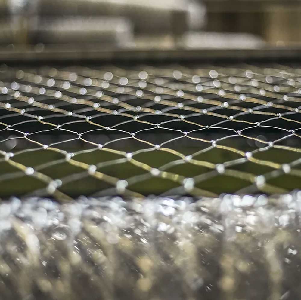 Malla de patrón hexagonal tejida con múltiples torsiones que proporcionan una estructura resistente, de característica blanda y amoldable, dando como resultado un producto versátil que abarca una amplia gama de aplicaciones y usos.